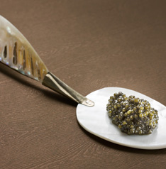 我们的马洛索鱼子酱(低盐),颗粒中等偏大,闪着深黑/灰色的光芒,并从内部隐约透出金色的微光。我们的鱼子酱不含任何添加剂,且含盐量极低,为您的味蕾带来绝美的鲜味和厚实滑嫩的质感。我们只会选择鱼龄超过20年的成熟鲟鱼,这使鲟鱼的产卵过程能够顺利进行。正因如此,经过严格挑选后的鲟鱼所产出的鱼子酱是极为珍贵的。我们生产出的鱼子酱,其味道与另一种更为出名的黑海鳇鱼鱼子酱颇为类似,但同时我们的鱼子酱颗粒极大,有着闪亮的透明灰色,使之成为鱼子酱世界中一个鲜为人知的秘密所在。